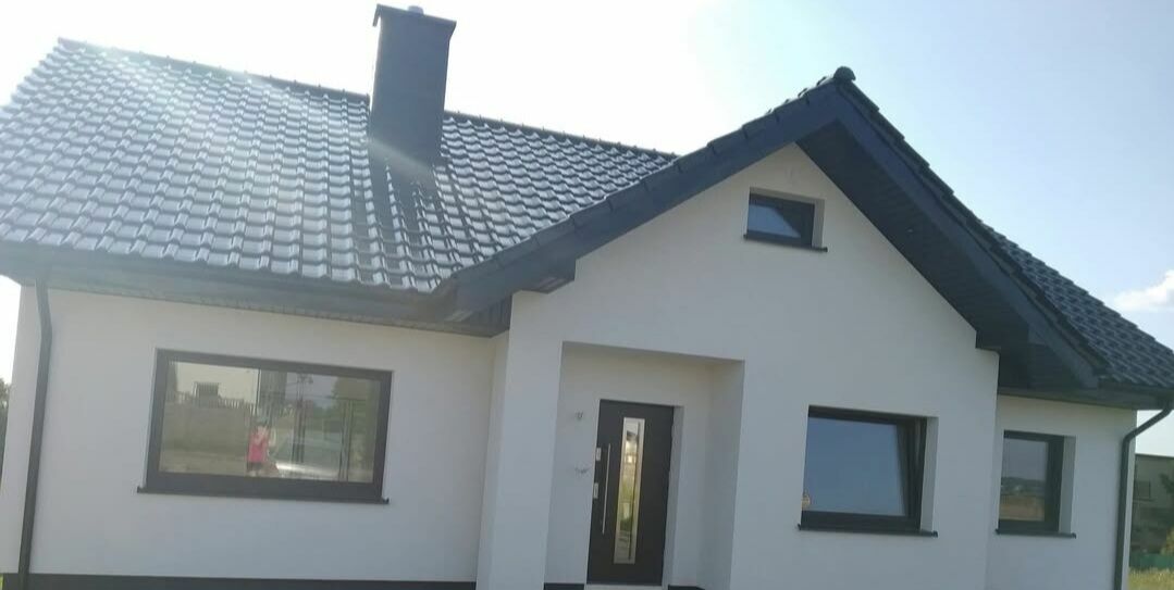 - okna antracyt 3 szybowe ciepły montaż oraz tzw. ciepłe parapety profil xps wewnątrz żaluzje plisowane